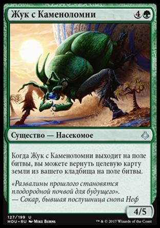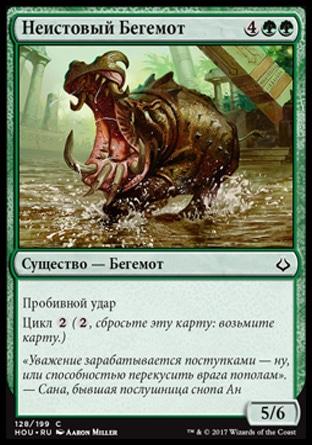 Когда Тварь Кровавой Воды выходит на поле битвы, вы можете положить целевую карту мгновенного заклинания или волшебства из вашего кладбища на верх вашей библиотеки.