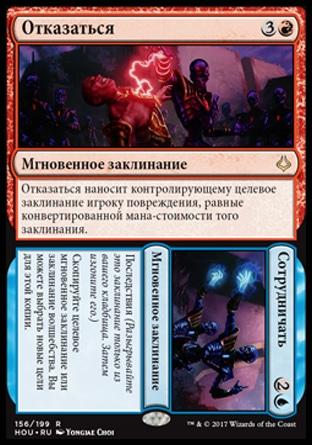 +2: целевой оппонент изгоняет карты с верха своей библиотеки до тех пор, пока не изгонит карту, не являющуюся землей. До конца хода вы можете разыграть ту карту без уплаты ее мана-стоимости.
