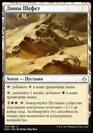, пожертвуйте Пустыню: целевое существо получает +3/+3 до конца хода. Активируйте эту способность только при возможности разыгрывать волшебство.