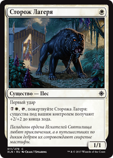 , пожертвуйте Сторожа Лагеря: существа под вашим контролем получают +2/+2 до конца хода.