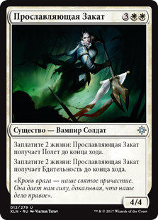 Заплатите 2 жизни: Прославляющая Закат получает Бдительность до конца хода.