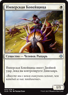 Имперская Копейщица имеет Двойной удар, пока вы контролируете Динозавра.