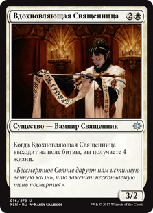 Когда Вдохновляющая Священница выходит на поле битвы, вы получаете 4 жизни.