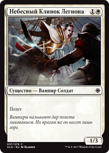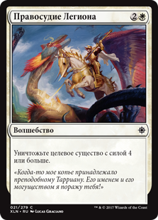 Когда Конкистадор Легиона выходит на поле битвы, вы можете найти в вашей библиотеке любое количество карт с именем Конкистадор Легиона, показать их, положить их в вашу руку, затем перетасовать вашу библиотеку.