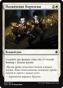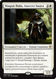 Каждый раз, когда один или несколько не являющихся фишками Вампиров под вашим контролем атакует, создайте одну фишку существа 1/1 белый Вампир с Цепью жизни.