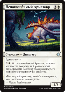 : Непоколебимый Армазавр наносит количество повреждений, равное своей выносливости, целевому блокирующему его или заблокированному им существу.