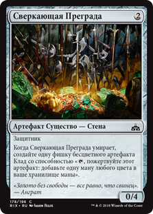 Когда Сверкающая Преграда умирает, создайте одну фишку бесцветного артефакта Клад со способностью «