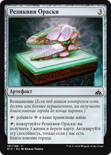 , пожертвуйте Реликвию Ораски: вы получаете 3 жизни и берете карту. Активируйте эту способность, только если у вас есть благословение города.