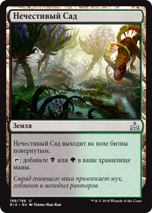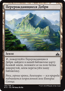 , пожертвуйте Перерождающиеся Дебри: найдите в вашей библиотеке карту базовой земли и положите ее на поле битвы повернутой. Затем перетасуйте вашу библиотеку.