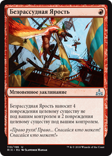 Безрассудная Ярость наносит 4 повреждения целевому существу не под вашим контролем и 2 повреждения целевому существу под вашим контролем.