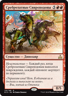 Неистовство — Каждый раз, когда Сребролатным Свиреподонам наносятся повреждения, каждый оппонент жертвует по перманенту.