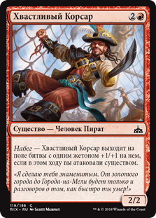 Набег — Хвастливый Корсар выходит на поле битвы с одним жетоном +1/+1 на нем, если в этом ходу вы атаковали существом.