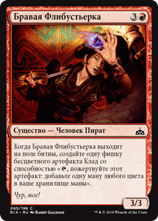 Когда Бравая Флибустьерка выходит на поле битвы, создайте одну фишку бесцветного артефакта Клад со способностью «
