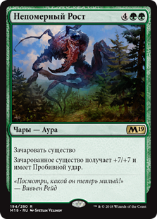 Зачарованное существо получает +7/+7 и имеет Пробивной удар.