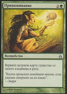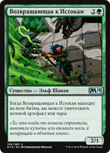 Когда Возвращающая к Истокам выходит на поле битвы, вы можете уничтожить целевой артефакт или чары.