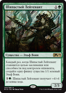 Каждый раз, когда Шипастый Лейтенант становится целью заклинания или способности под контролем оппонента, создайте одну фишку существа 1/1 зеленый Эльф Воин.