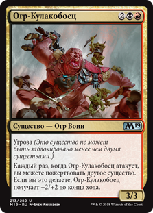 Целевое существо получает +3/+3 до конца хода. Все существа, способные блокировать его в этом ходу, делают это.