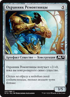 Охранник Ремонтницы получает +2/+0, пока вы контролируете синее существо.