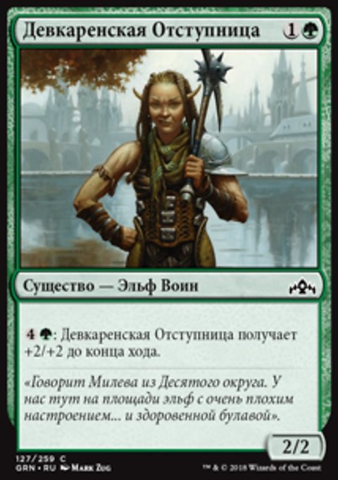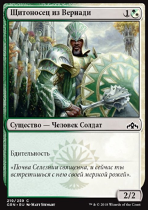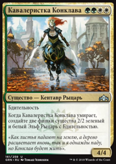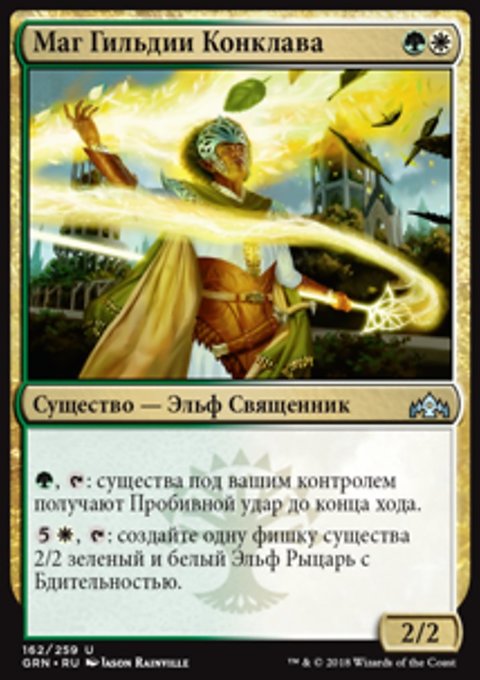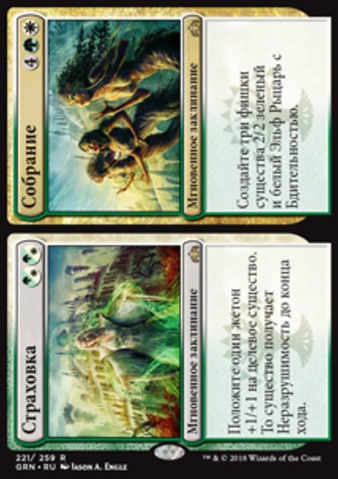 • Создайте одну фишку существа 2/2 зеленый и белый Эльф Рыцарь с Бдительностью.