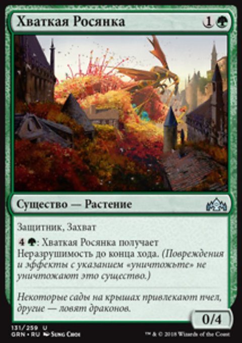 : Хваткая Росянка получает Неразрушимость до конца хода. (Повреждения и эффекты с указанием «уничтожьте» не уничтожают это существо.)