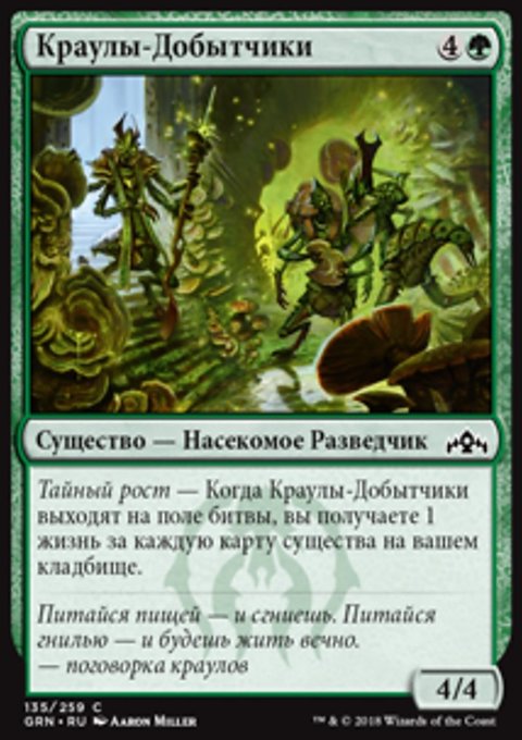 Тайный рост — Когда Краулы-Добытчики выходят на поле битвы, вы получаете 1 жизнь за каждую карту существа на вашем кладбище.