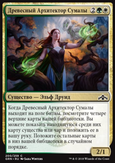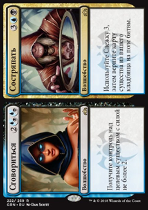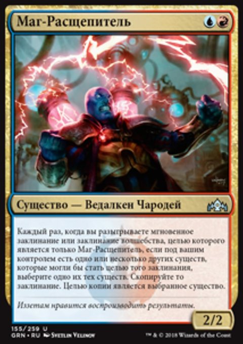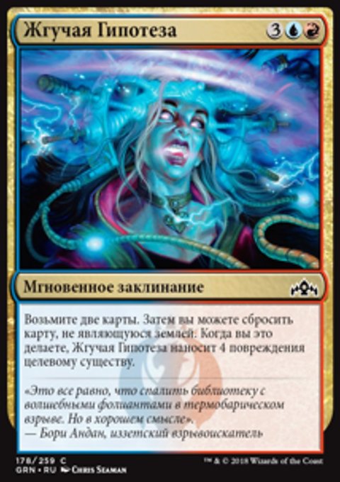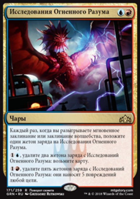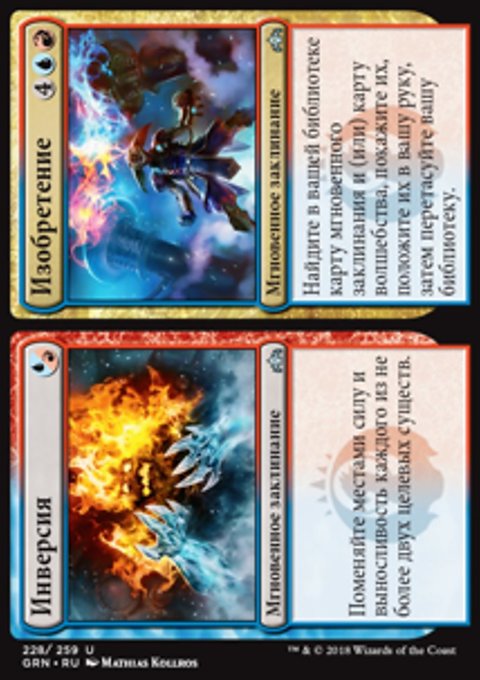 Найдите в вашей библиотеке карту мгновенного заклинания и (или) карту волшебства, покажите их, положите их в вашу руку, затем перетасуйте вашу библиотеку.