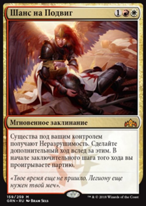Существа под вашим контролем получают Первый удар и Бдительность до конца хода. После этой главной фазы идет дополнительная фаза боя, а за ней — дополнительная главная фаза.