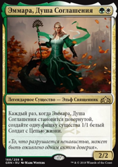 Стражник Палаты Договора выходит на поле битвы с одним жетоном +1/+1 на нем за каждый цвет маны, потраченной на его разыгрывание.