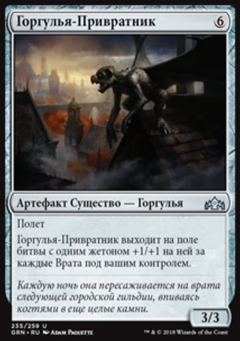 Горгулья-Привратник выходит на поле битвы с одним жетоном +1/+1 на ней за каждые Врата под вашим контролем.