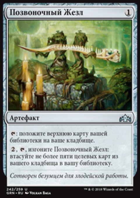 , изгоните Позвоночный Жезл: втасуйте не более пяти целевых карт из вашего кладбища в вашу библиотеку.