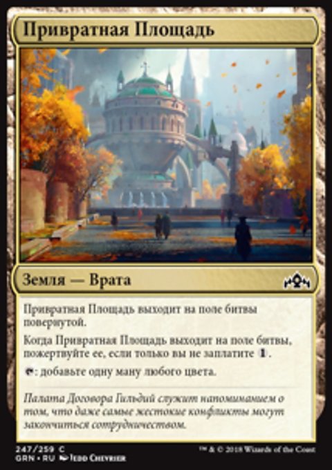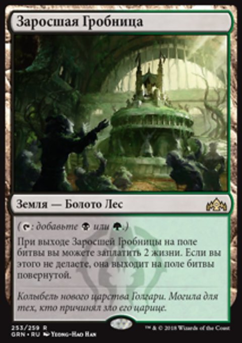 При выходе Заросшей Гробницы на поле битвы вы можете заплатить 2 жизни. Если вы этого не делаете, Заросшая Гробница выходит на поле битвы повернутой.