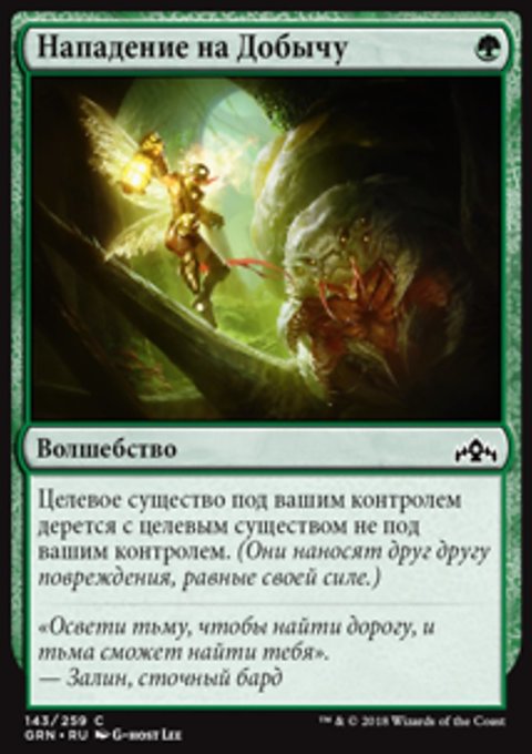 Целевое существо под вашим контролем дерется с целевым существом не под вашим контролем.