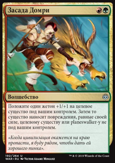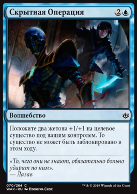 Вы и перманенты под вашим контролем получаете Порчеустойчивость до конца хода. (Вы и они не можете быть целями заклинаний или способностей под контролем ваших оппонентов.)
