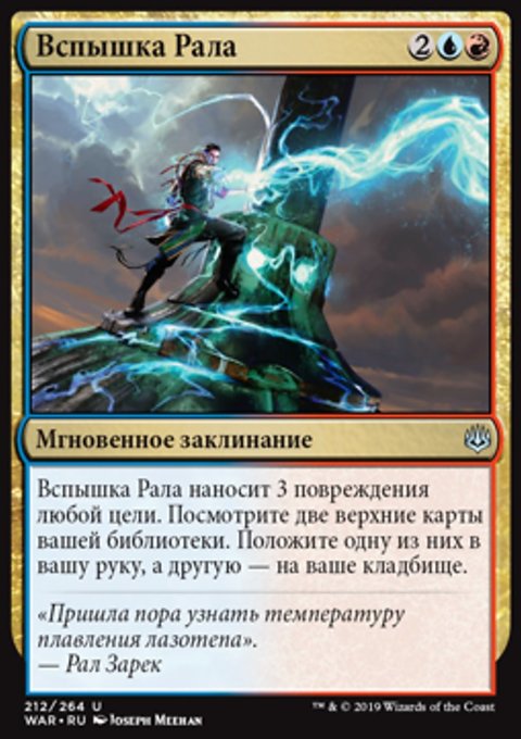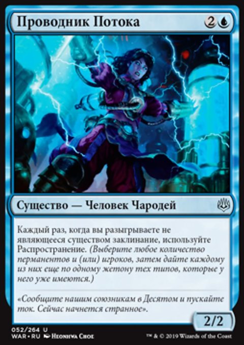 Вы можете показывать первую карту, которую вы берете в каждом ходу, в момент ее взятия. Каждый раз, когда вы таким образом показываете карту мгновенного заклинания или волшебства, скопируйте ту карту, и вы можете разыграть копию. Разыгрывание той копии стоит на