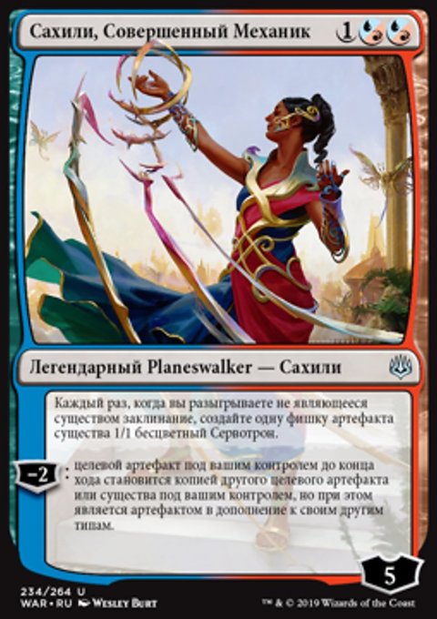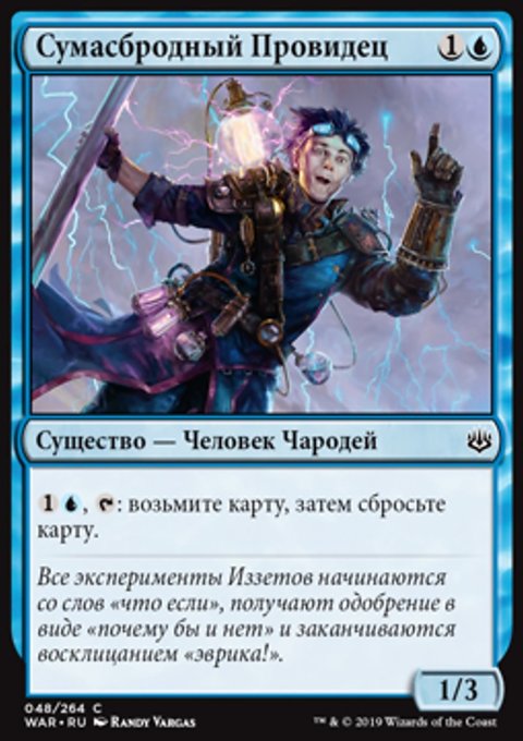 −2: создайте одну фишку существа 2/2 синий Чародей. Возьмите карту, затем сбросьте карту.