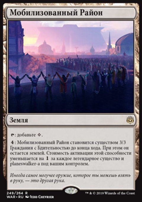 : Mobilized District becomes a 3/3 Citizen creature with vigilance until end of turn. It's still a land. This ability costs