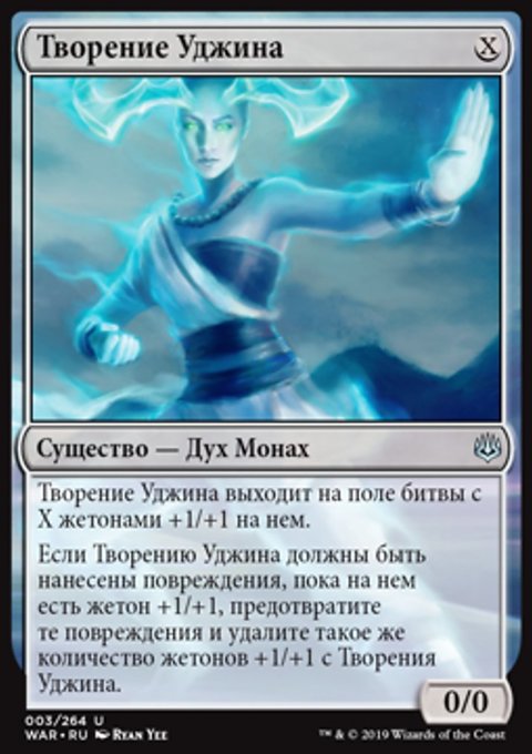 Творение Уджина выходит на поле битвы с X жетонами +1/+1 на нем.