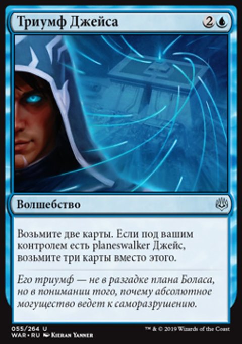 Возьмите две карты. Если под вашим контролем есть planeswalker Джейс, возьмите три карты вместо этого.