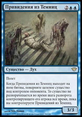 Когда Привидения из Темниц выходят на поле битвы, поверните целевое существо под контролем оппонента. То существо не разворачивается во время шага разворота контролирующего его игрока все время, пока вы контролируете Привидений из Темниц.