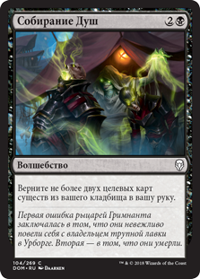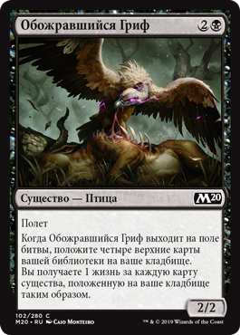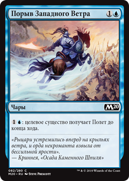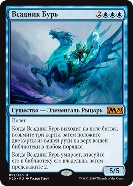 Когда Всадник Бурь выходит на поле битвы, возьмите три карты, затем положите две карты из вашей руки на верх вашей библиотеки в любом порядке.