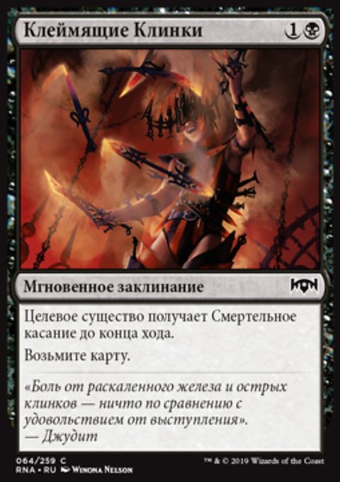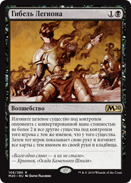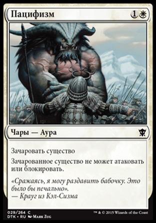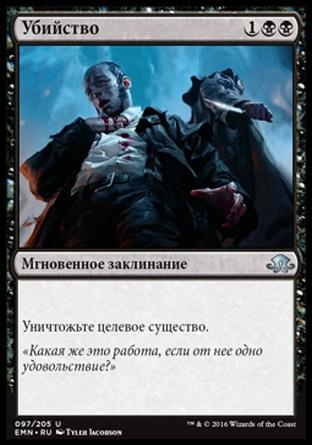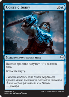 Изгоните целевое красное или черное существо или planeswalker-а. Предскажите 1. (Посмотрите верхнюю карту вашей библиотеки. Вы можете положить ту карту в низ вашей библиотеки.)