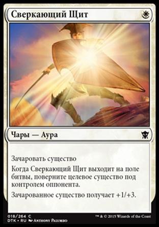 Когда Сверкающий Щит выходит на поле битвы, поверните целевое существо под контролем оппонента.