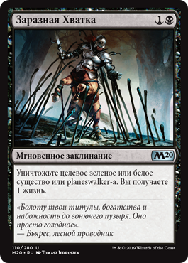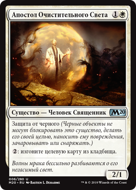 Защита от черного (Черные объекты не могут блокировать это существо, делать его своей целью, наносить ему повреждения, зачаровывать или снаряжать.)