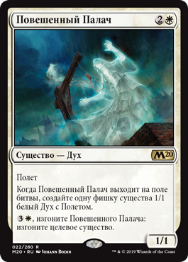 Когда Повешенный Палач выходит на поле битвы, создайте одну фишку существа 1/1 белый Дух с Полетом.