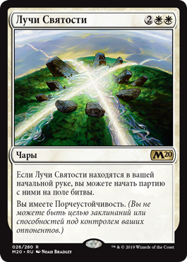 Если Лучи Святости находятся в вашей начальной руке, вы можете начать партию с ними на поле битвы.
