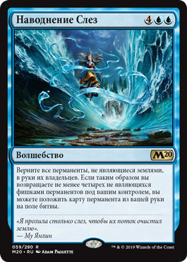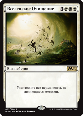 Верните все перманенты, не являющиеся землями, в руки их владельцев. Если таким образом вы возвращаете не менее четырех не являющихся фишками перманентов под вашим контролем, вы можете положить карту перманента из вашей руки на поле битвы.