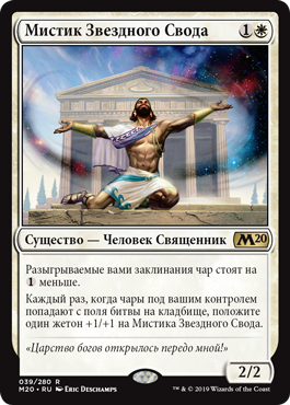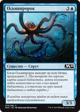 Когда Осьмипророк выходит на поле битвы, предскажите 2. (Посмотрите две верхние карты вашей библиотеки, затем положите любое количество из них в низ вашей библиотеки, а остальные на верх вашей библиотеки в любом порядке.)