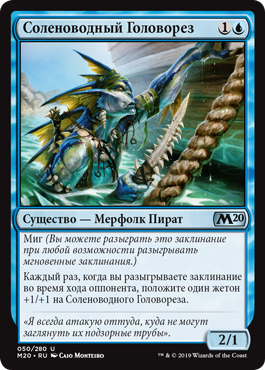 Каждый раз, когда вы разыгрываете заклинание во время хода оппонента, положите один жетон +1/+1 на Соленоводного Головореза.