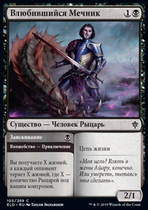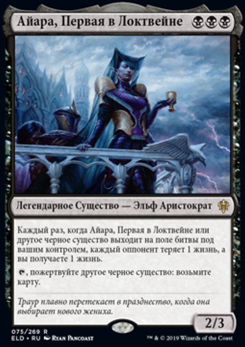 Каждый раз, когда Айара, Первая в Локтвейне или другое черное существо выходит на поле битвы под вашим контролем, каждый оппонент теряет 1 жизнь, а вы получаете 1 жизнь.