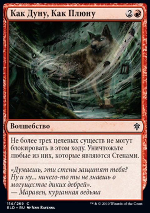 Если красный источник под вашим контролем должен нанести повреждения оппоненту или перманенту под контролем оппонента, вместо этого он наносит на 2 повреждения больше.